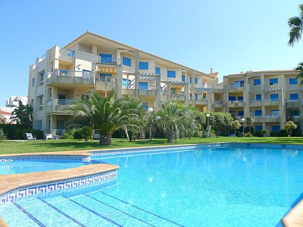 Apartment block "Las Dunas". 7 km from the centre of Dénia, 20 m from the sea, on the beach. For shared use: well-kept garden with lawn, swimming pool (9 x 16 m, seasonal availability: 01.Jan. - 31.Dec.) with internal staircase. In the house: lift. Parking on the premises. Supermarket 200 m, restaurant 300 m, bus stop 100 m, sandy beach 20 m. The owner does not accept any youth groups.
