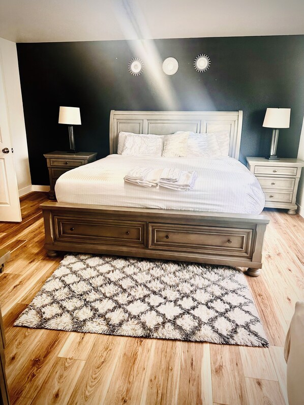 • One bedroom with a king-size bed