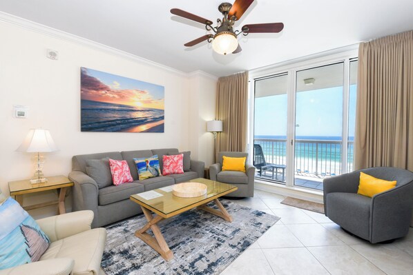Beautiful condo with a perfect view of the gulf! We saw dolphins from our balcony almost every day! The condo was clean, bright, tastefully decorated and great access to the beach. Perfect location, close to shopping, restaurants and family friendly activities. A great place to stay!
