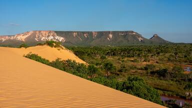 Serra das Escrituras, onde um painel de 10 m. Tem inscrições geométricas que relembram os primeiros habitantes pré-históricos da região.Morro do Segredo, uma formação que lembra um vulcão.