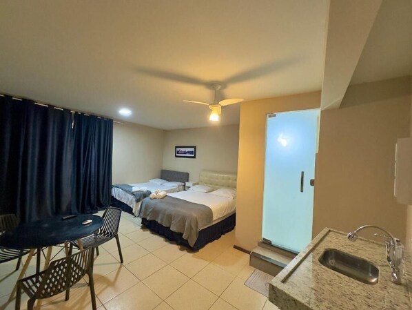 Frigobares, micro-ondas e serviço de arrumação
