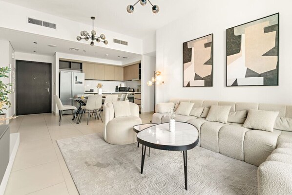 It is fully equipped with stainless-steel cooking appliances that make it suitable for preparing any meal, whether a simple breakfast, quick snack or a three-course gourmet dinner. Spacious quartz countertops and a central kitchen island provide plenty of room to work your MasterChef magic.