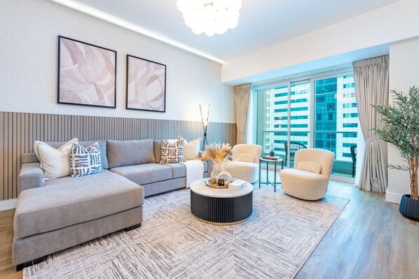 High-Floor 2BR with Pool and City Views, Near Tram Station and Dubai Marina Walk