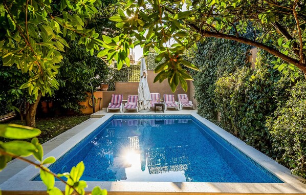 Sim, esta propriedade tem uma piscina.