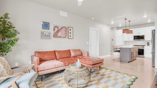 The Golden Hour - Lux Downtown 2BR Sleeps 4 oferece comodidades como lavanderia e muitas outras. Os hóspedes podem ficar on-line com o Wi-Fi grátis nos quartos.