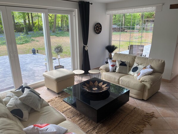 In Chardonnerets, garden level in a wooded setting 20 min from Pairi Daiza