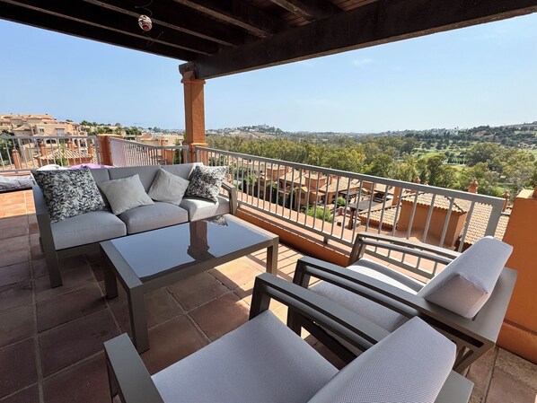 This is an exclusive, modern penthouse apartment on a 5 star complex furnished to the highest standards and finished to a high quality with marble floors throughout. An elevated plot surrounded by three exclusive Marbella golf courses, El Paraiso, Monte Mayor and with panoramic views from many of the terraces overlooking Atalaya, one of the most prestigious golf courses in the area and 10 other courses within a 10 minute drive. Just a few minutes away is Benahavis village, famous for its top class restaurants and nearby, the famous resorts of Marbella and Puerto Banus offer entertainment both day and night, and not forgetting the luxury designer shopping. It is a location where quality and exclusivity are felt in every detail making Benatalaya an ideal place to stay. On this coast there is something for everyone - families, couples, groups of friends and golfers.
