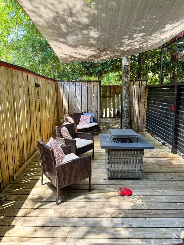 ☕ Exquisite outdoor space for morning coffee, alfresco lunch, or sunset cocktails under the trees