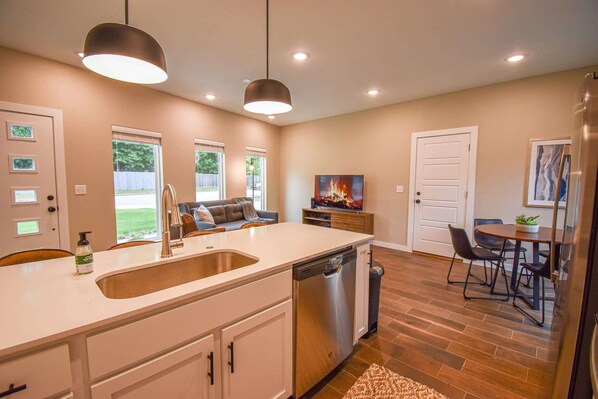 - Open-concept kitchen and living room
