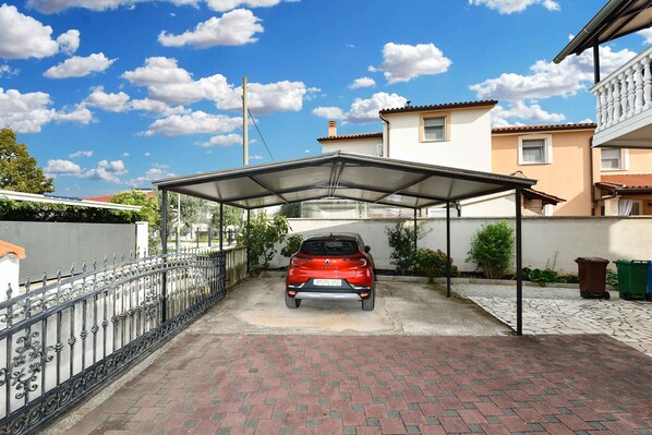 Location Valbandon. The holiday apartement is located on a 36 sqm open plot. The landlord lives permanently in the house. Access is via a side road (asphalted). Parking is available on the property.