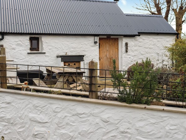 Cosy studio-style cottage full of charm, featuring a wood burner and delightfully quirky outdoor sink. Peacefully set in the Pembrokeshire countryside, close to the coast and walking routes. A characterful retreat for a relaxing escape.. 3 steps to entrance.
