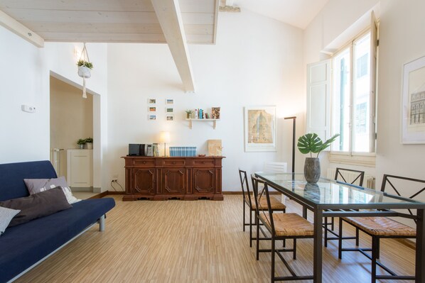 Cozy apartment equipped with all comforts, located on the top floor (no elevator; about 40 steps, plus 10 internal steps to access the loft bedroom) of a very clean and quiet building in the heart of Florence.