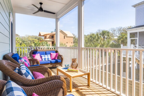 Screened-In Deck: Overlooks the pool, offering a shaded spot to relax while watching the kids play.