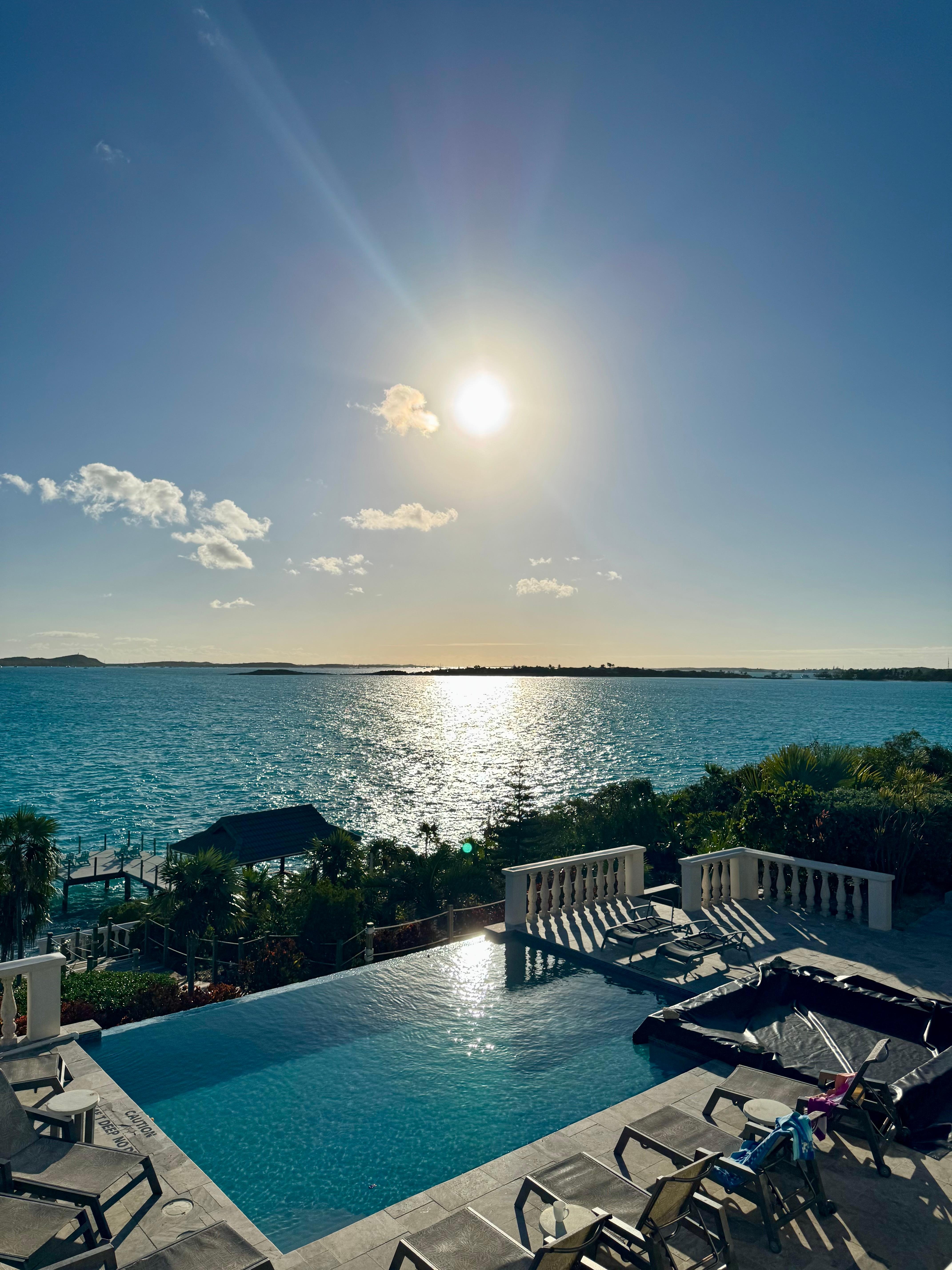 We stayed at Vista Del Mar for our first trip to the Bahamas and it was wonderful! This home is spacious with soaring ceilings that add to the overall character of a home that is not cookie cutter vacation rental. A different layout, in a good way, with the master bedroom and two other bedrooms separated outside the main house. But the huge outdoor terrace was our favorite part! Overlooking a fantastic pool with an infinity edge looking over the incredible turquoise water in the bay!! Spectacular! We hired a chef for a night, coordinated by Jonas, and we enjoyed it. Make sure to double check the exact costs before you agree. Had some disprepency there but it wasnt Jonas's fault. Just a fantastic vacation and we would love to come back! Denise was extra quick to answer questions before and during our stay. We also appreciated the extras they have for guests...floats, kayaks, snorkeling gear, small cooler.. Very convenient!!