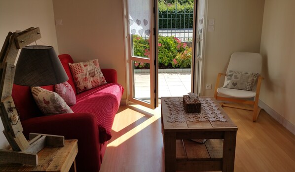 You will put your suitcases in this apartment of 2 independent bedrooms with double bed, wardrobe and extra sleeping on the sofa bed in the living room. Shower room with Italian corner shower, basin and separate toilet. Private washing machine in the laundry room on the ground floor. Fitted kitchen semi-open to the living room. Full appliance: dishwasher, fridge / freezer, oven, microwave, raclette and fondue, espresso ... nothing will be wanting and you can always count on the owner's advice for the best addresses in two steps from the accommodation. The living room with direct access to the terrace is equipped with a TV, DVD player, library with local books and board games.