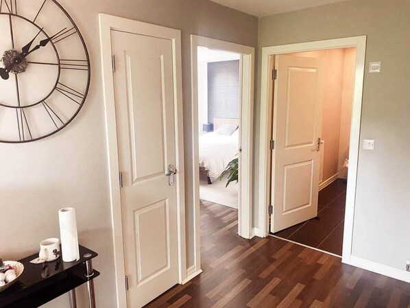 Come and relax in this stylish riverside apartment in a prime central Glasgow location. The apartment sits on the edge of the River Clyde minutes away from the City Centre. Glasgow Green is situated at the opposite side of the river, making this the perfect spot for anyone attending a festival or concert, as well as being a very short taxi away from Hampden Park (Scotlands National football stadium) The flat it’s self is perfect for a small family, couples or a small group on a city break. **UPDATE** SOFA BED REPLACED WITH DOUBLE BED IN SECOND BEDROOM AFTER GUEST FEEDBACK. The Flat features a large living room area, with a 65inch TV with sound system connected, Freeview TV included, as well as Netflix, Prime Video, BBC IPlayer and more. There is also a Large bench area, perfect for work or meals and a Clean and tidy kitchen area, with a DeLonghi fresh coffee machine, pots and pans, kettle, toaster, Gas hob, microwave and much more. I have provided oil, salt and pepper, as well as a selection of herbs and spices to get you started. There are two bathrooms on the property, 1 Large main bathroom, including a shower and bath, and a en-suite bathroom with another shower included. Bedroom 1 includes a large comfortable king size bed, and a tv included with freeview, Netflix and prime video. There is an en-suite toilet, complete with shower, and a large wardrobe as well. Bedroom 2/Study includes a Desk Area perfect for work or computer space if needed, a lovely new double bed and another TV, set up with a PS5 and two controllers (if requested) There is a large spacious hall area as well and heated clothes horses provided, if you need to wash anything. I can also provide any of the following if requested -: Exercise Bike PS5 Poker Set Tumble Dryer High Chair Portable Cot The flat is equipped with a digital Keypad entrance giving you a quick and easy Self Check-in. NOTE - this is not an apartment for parties. We have a good relationship with our neighbours and do not want that to end. If there are any complaints from neighbours or we hear of any parties, the police will be contacted. Please respect our neighbours above and below, and limit the noise late into the night. The property is available for 4 people maximum over two beds, If you require more, this has to be discussed prior to your stay. This is a no smoking property. The Heating and electricity are there for free usage but not to be abused. If there is larger than regular usage you will be charged. The Guests will have full access to the property. Minus one locked cupboard used as space for cleaners and storage. I will leave a note for any guests with info on what is local, as well as my contact information. I will always be more than happy to help with travel info, restaurant suggestions, or anything else you might need The area is a private and relaxing residential setting, with a local shop just a couple minutes walk away, and a cafe opening in the estate very soon. There is free private parking outside. The flat is a couple minutes away from the M74 as well, for easy access all around Glasgow. You can also walk into town through Glasgow Green, which takes about 20 minutes. Otherwise you can grab a taxi/uber for a very short trip into Glasgow.