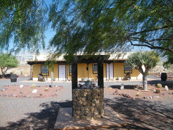 In the outside of the house you will find a magnificent porch where you can enjoy a garden, with a great variety of cactus, and a unique view to the sea and the mountain, in furniture necessary for your comfort. The San José country house offers you everything to enjoy an unforgettable holiday.
