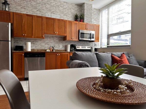 Welcome to our modern Quinpool loft, designed to give you a comfortable base while you explore Halifax. The open living space offers plenty of natural light, high ceilings, and cozy seating, making it a great place to relax after a day in the city.