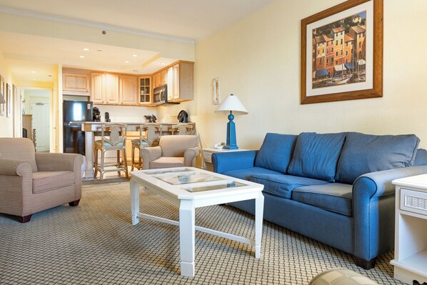 With a King bed and Queen-sized sleeper sofa, this cozy little one-bedroom condo can accommodate up to four guests with ease. Throughout the interior, pictures of sea-life have been hung to remind vacationers of the nautical history that is prolific throughout the OBX and particularly prevalent in Hatteras. Flat screen TVs adorn both the living room and bedroom to allow for comfy relaxation after a great day at the beach!