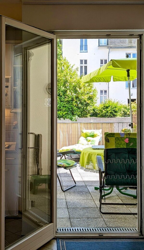 Este apartamento em Heringsdorf dispõe de cozinha e pátio