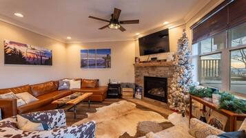 Family friendly mountain view, modern retreat.