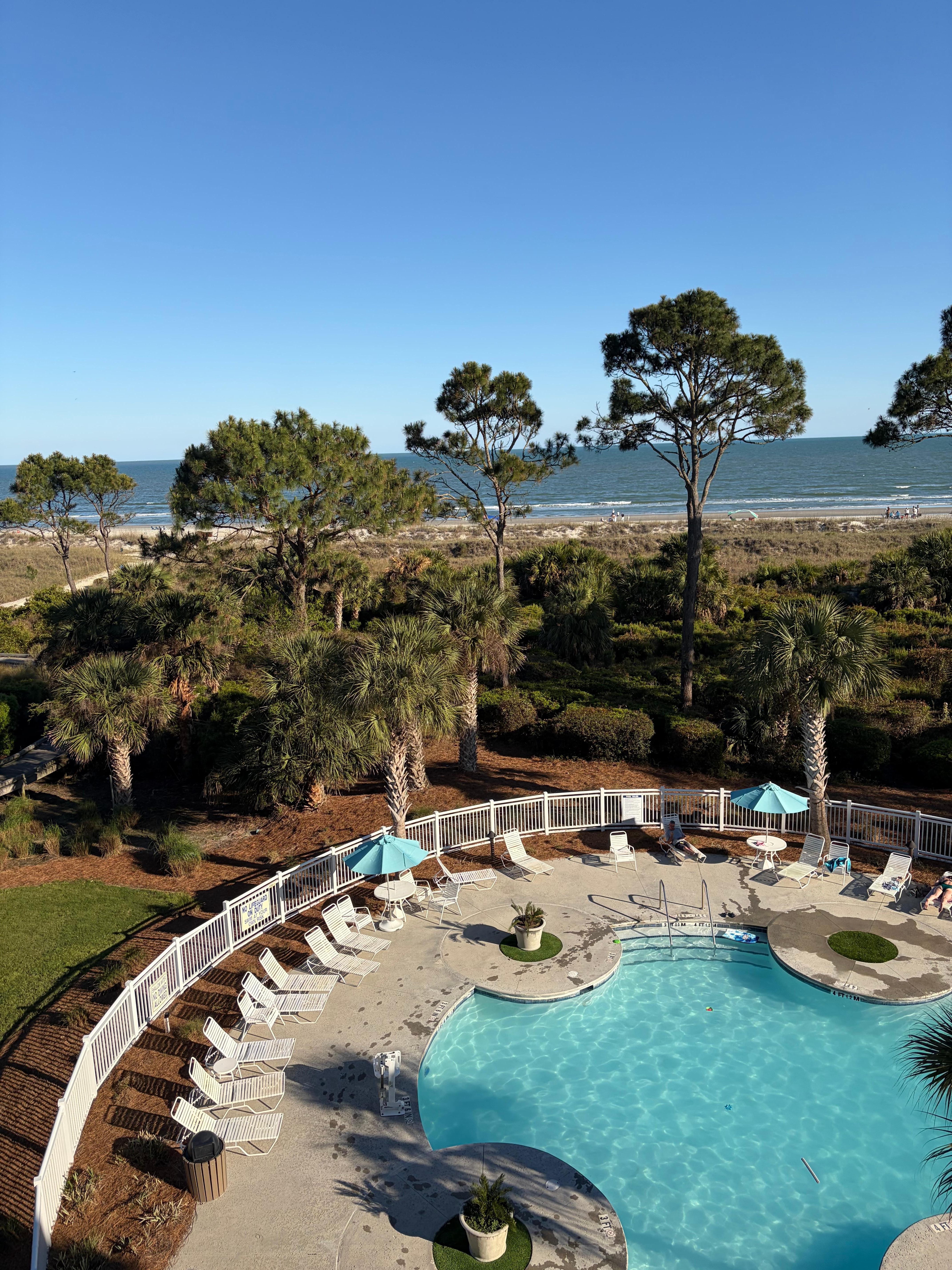Enjoy the spectacular direct oceanfront villa from the balcony on Hilton Head Island! Have breakfast on the balcony while looking at the sunrise, later take a short walk and spend the day on the beach or take a dip in the heated pool.