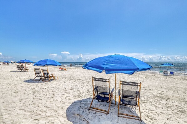 Experience a pleasant stay dipping in and out of the pool, playing tennis, or working out at the on-site fitness center when you stay at this oceanfront Hilton Head condo! In the evening, relax with a glass of wine on the villa’s private balcony facing the ocean.