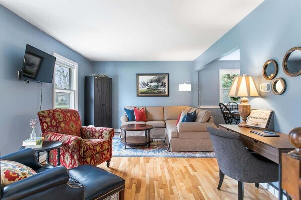 Finding comfort and relaxation at Colonial Cottage, where there's room to spread out and unwind. Whether it's curling up with a captivating book in the front living room or enjoying a movie marathon in the family room by the crackling fireplace, this cottage has it all.