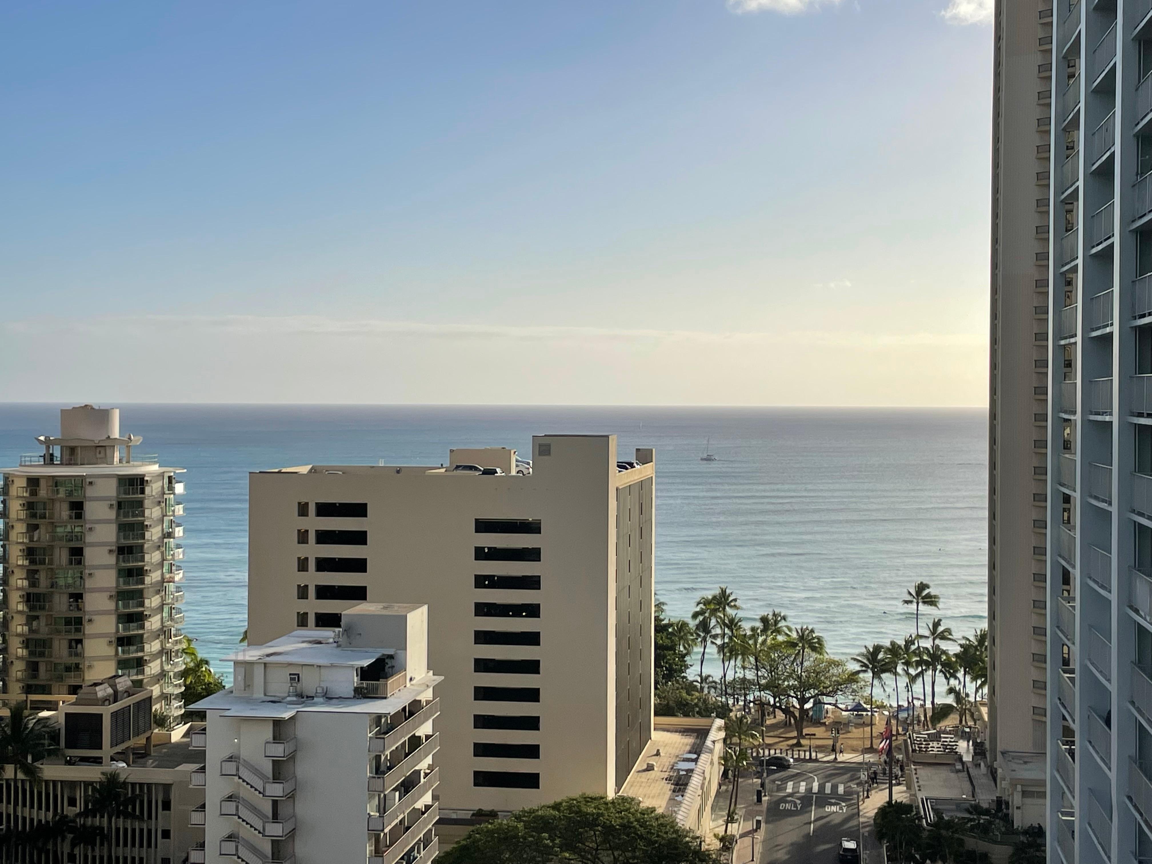 Partial ocean view 2 min walk from the hotel to the beach. Thank you to all the staff and Arnell the valet specialist took care of my and I and made Hawaii feel like a second home for us