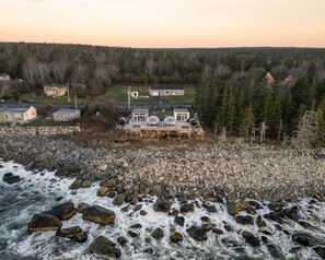 Escape to your own exclusive luxury villa perched on the edge of the bold Atlantic Ocean with access to private hot tub, panoramic view cedar barrel sauna and clear dome on a 2800 square foot deck. Explore the numerous nearby white sandy beaches, hike nearby Trestle Trail, Kejimkujik Seaside Adjunct, Thomas Raddall Provincial Park or relax and enjoy your own private one bedroom oasis where you can observe diverse marine life, breathtaking sunsets and stargazing from the comfort of this expansive and well furnished patio. This cottage shares a 2800 square foot deck with Comfy Seaside Cabana which is divided in half using a privacy partition. The hot tub, cedar barrel sauna, clear dome, barbecue, deck side and outdoor furniture is private to Peaceful Oceanfront Cabine. The fire pit is shared with Comfy Seaside Cabana.