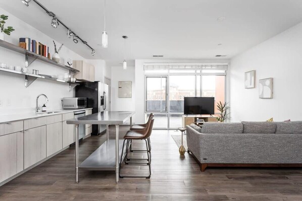 You’ll have everything at your fingertips in the heart of the Bottleworks District of Indy. Step outside your door to the Indy Cultural Trail, a world-class urban bike and pedestrian path that connects unique neighborhoods, cultural districts, and entertainment. Planning on taking advantage of our full kitchens? Needler's Market is just a few blocks away.