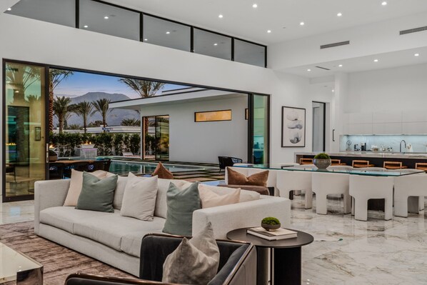 This refined desert retreat is designed for effortless indoor-outdoor living and elevated group getaways. Located adjacent to La Quinta and directly across from the exclusive Madison Club and Hideaway Golf Club, this residence is part of a rare, gated enclave of just 16 custom-built vacation homes defined by uncompromising luxury and modern design.