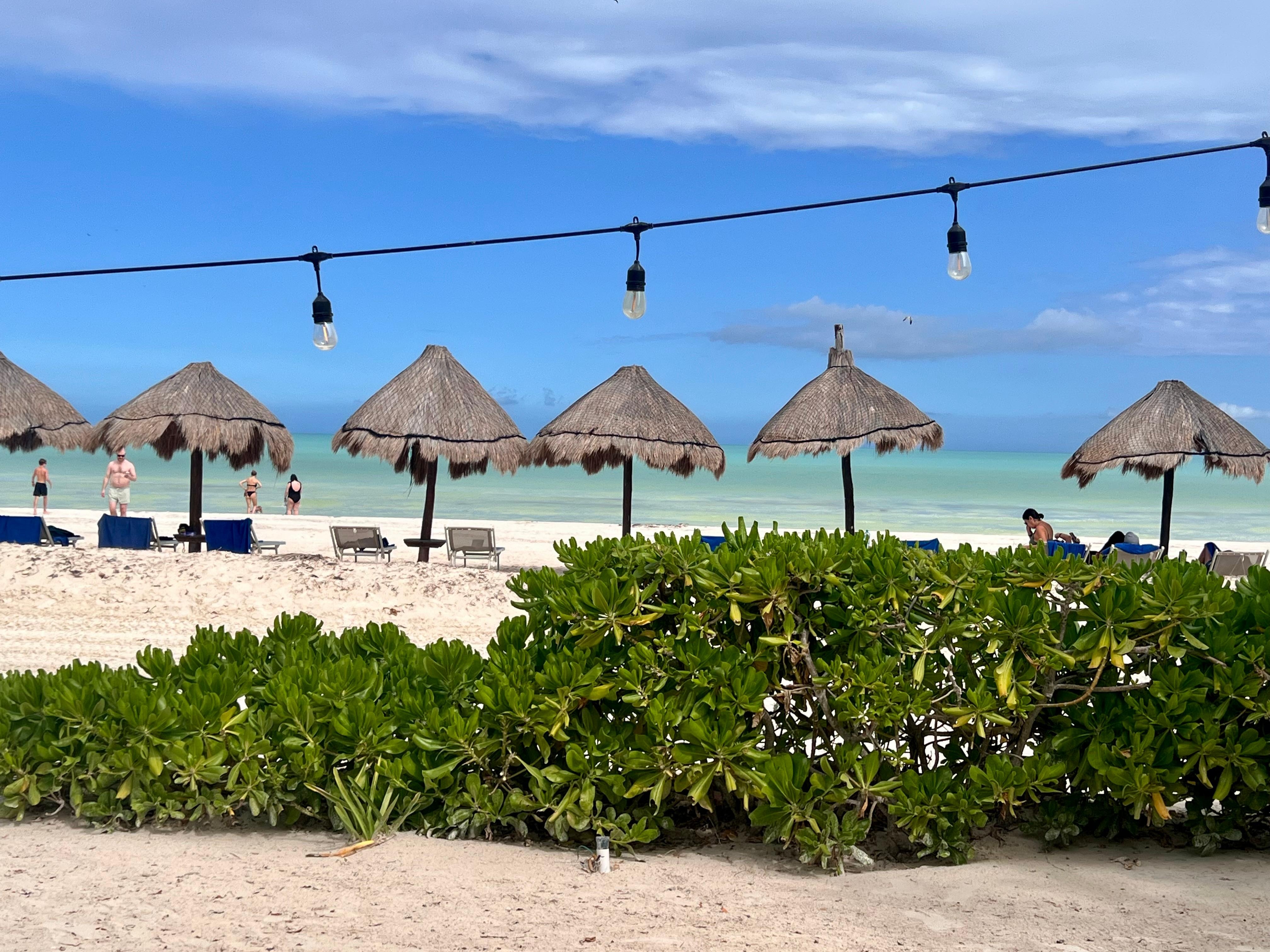 We stayed 6 nights. Had problems with toilet since we arrived. There is animal droppings in shower daily. No T.V in room. Daily breakfast was delicious. Distance from centro restaurants is far. 30 min walking but taxis available often 150 pesos each way to centro restaurants. Hammocks and beach area are beautiful.