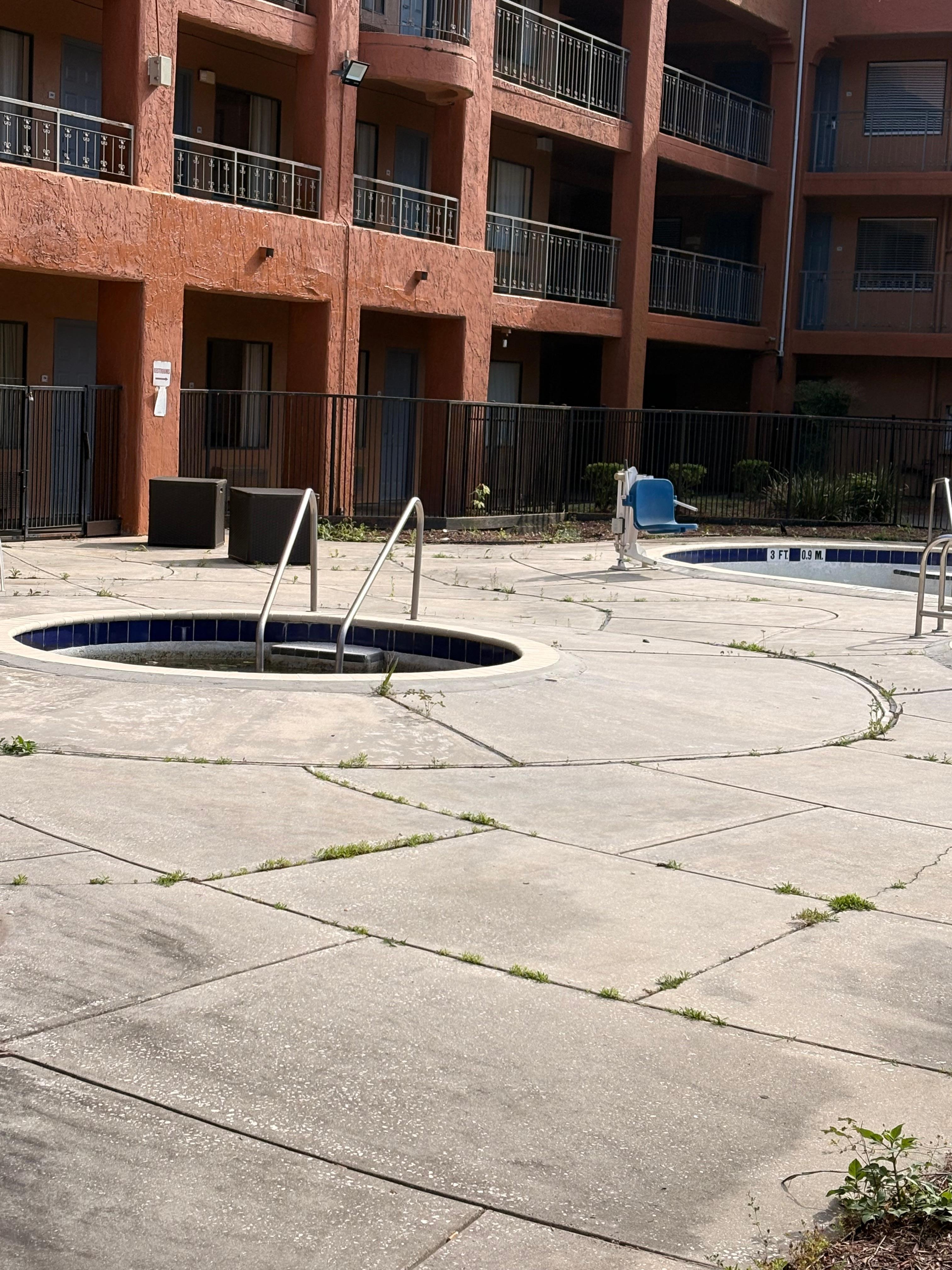 The entire property is filthy. The pictures on Expedia are not the actual hotel. The pool and hot tub are filled with trash. And the room smells like smoke and urine. We immediately walked out and demanded a refund. You should be ashamed of yourself for letting your property be in this condition.