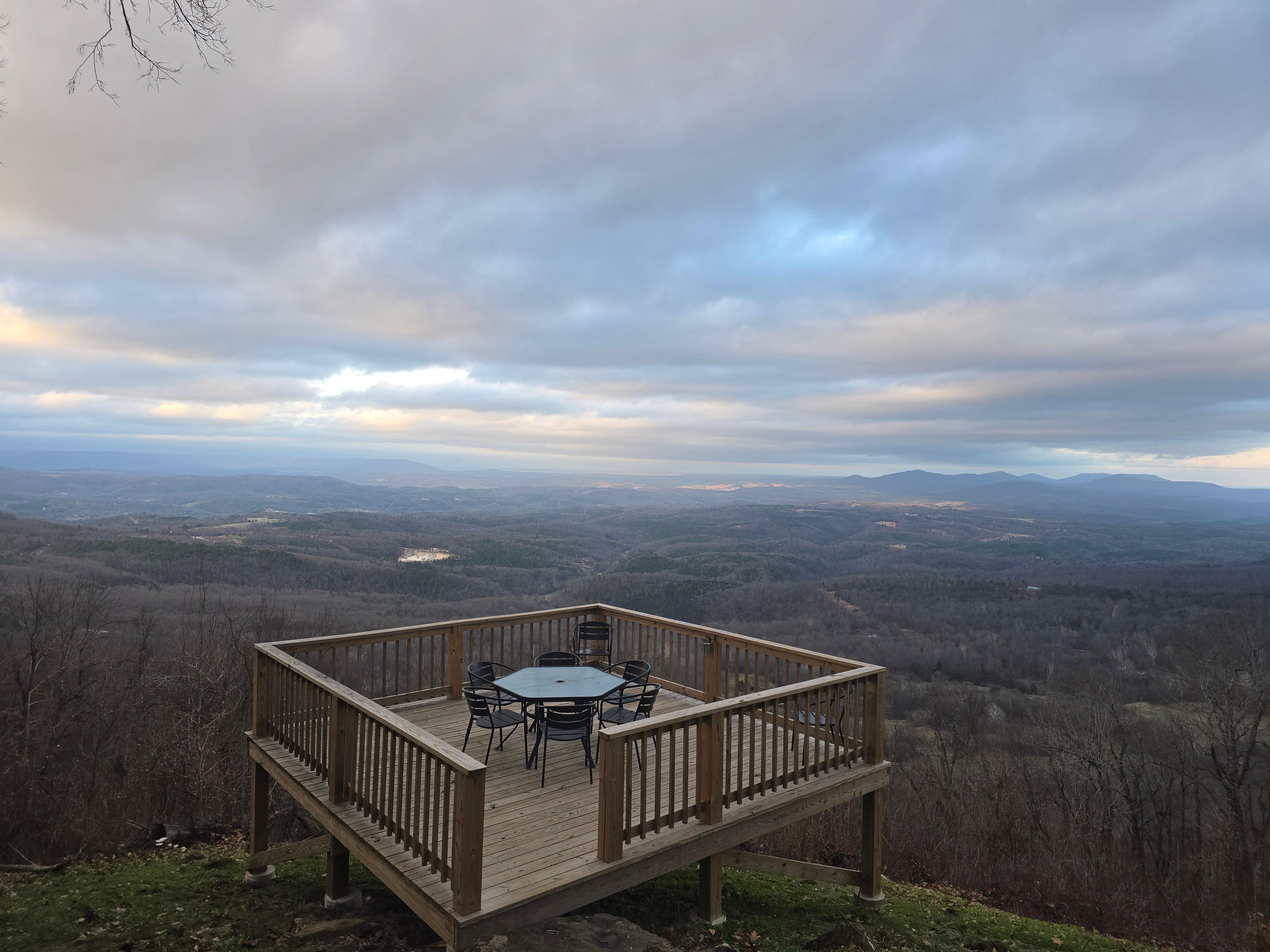 The Cabin sits on the Edge of the Arkansas Grand Canyon. The views are Breathtaking and Peaceful.