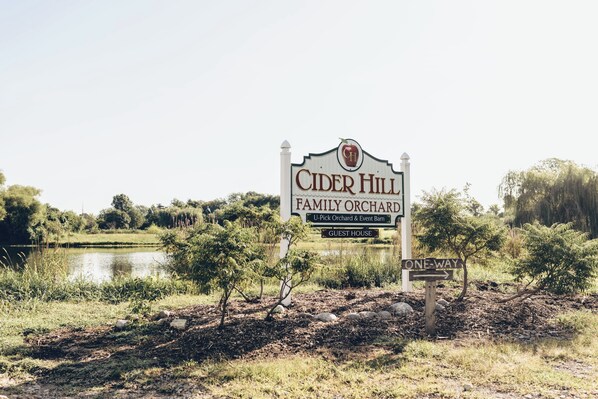 Quiet hours: 10 PM – 8 AM. Guests are NOT permitted to be in the orchards or event barn without permission. The backyard and front yard is available.