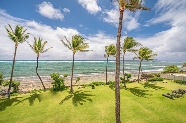 Great center location on Kauai to visit the North Shore and the South Shore from this unit. Bike and walking path starts right at the parking lot. Restaurants within walking distance. Beautiful ocean front view from the living space of this unit. Clean and tidy space. Adequately equipped kitchen. On site staff were friendly and accommodating. Check in and checkout were easy. I would definitely stay at this place again. Communication with the host was fast.