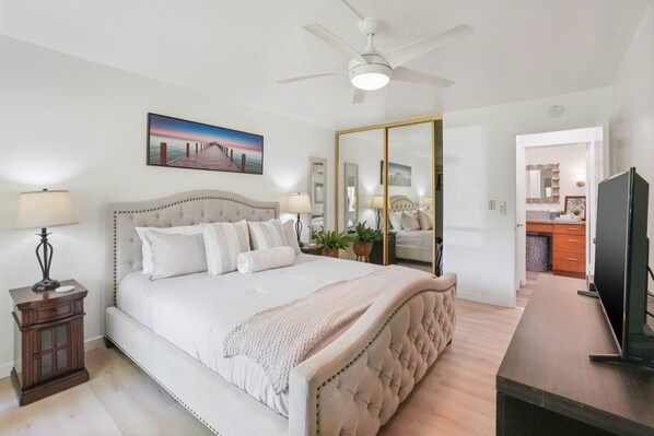 • Primary Bedroom – California King bed, ensuite with shower/tub combo, lanai access