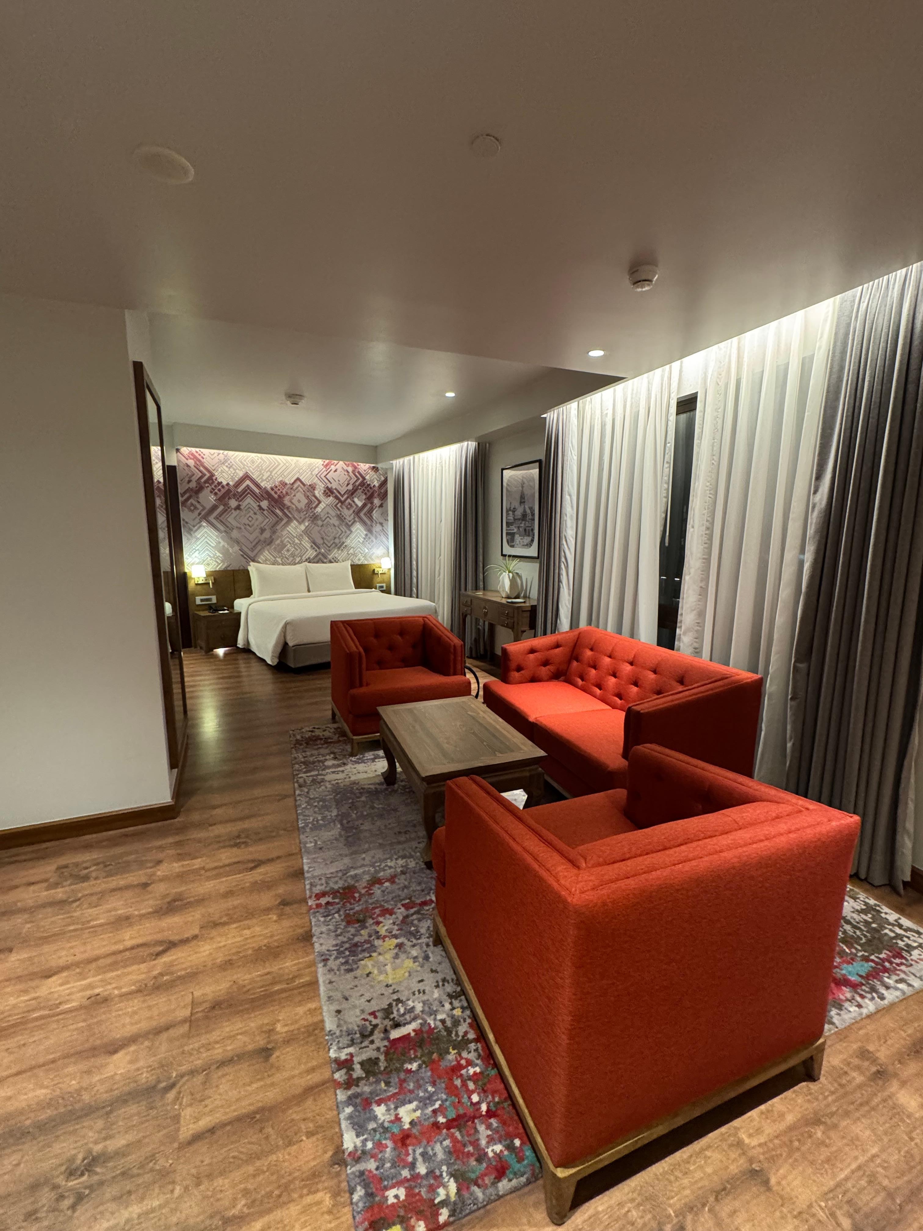 Lovely hotel in north central Kathmandu. Service was pleasant and the room (Junior Suite) was spacious and clean (although a bit noisy). Arranged transportation from the airport via the hotel that was convenient. Attempted to arrange a city tour via their website and never received a response back after an initial we received your request and will get back to you email. Not sure what happened. The breakfast buffet was good. Enjoyed an evening meal at the rooftop Kibu which very good with huge portions. It seems to be a good location especially if you are arranging tours that pick you up, otherwise I’d not say this was a very “walkable” location, there are a few other hotel nearby and a few gift shops.