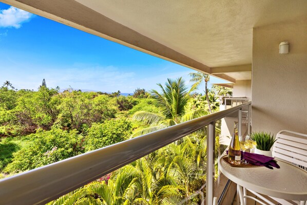 Inside, you'll find new luxury vinyl plank flooring, a mini fridge, microwave, and Keurig coffee maker—perfect for light meals and morning brews. Step out onto your covered lanai and soak in the tropical views as you unwind with a drink or a good book.