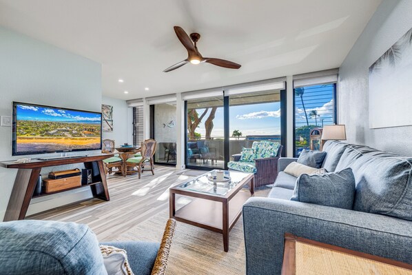 • Spectacular Ocean Views – Enjoy stunning Pacific Ocean vistas from the living room, kitchen, dining area, and covered lanai.