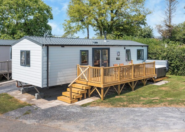Well equipped modern caravan. One double and one twin, will not have beds made up. All beds will be made with mattress protectors and bottom sheets. The remaining linen will be left in a pack on top for the guests to make up on arrival. Family shower room. Stylish open plan lounge/dining area with doors leading to decking/patio area. Outdoor hot tub. No towels provided.