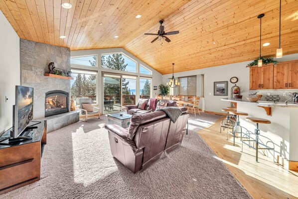 This Kings Beach vacation rental has everything your group needs for a relaxing trip together. Look forward to gorgeous lake views and fresh mountain air at Sunny Daze Cabin! When you’re not taking advantage of the best location for year-round fun, curl up for a movie on the 65” TV. Step onto the deck and enjoy an al fresco meal made on the gas grill. Finally, the jetted tub next to the 2-sided gas fireplace is the perfect way to end a day on the ski slopes.
