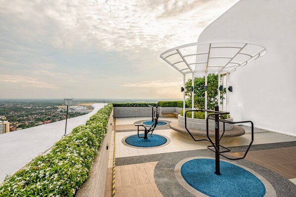 Esta propriedade tem espaços externos, como sacadas, pátios ou terraços, que podem não ser adequados para crianças; se tiver alguma preocupação, recomendamos entrar em contato com a propriedade antes da chegada para confirmar se é possível acomodar você em um quarto adequado