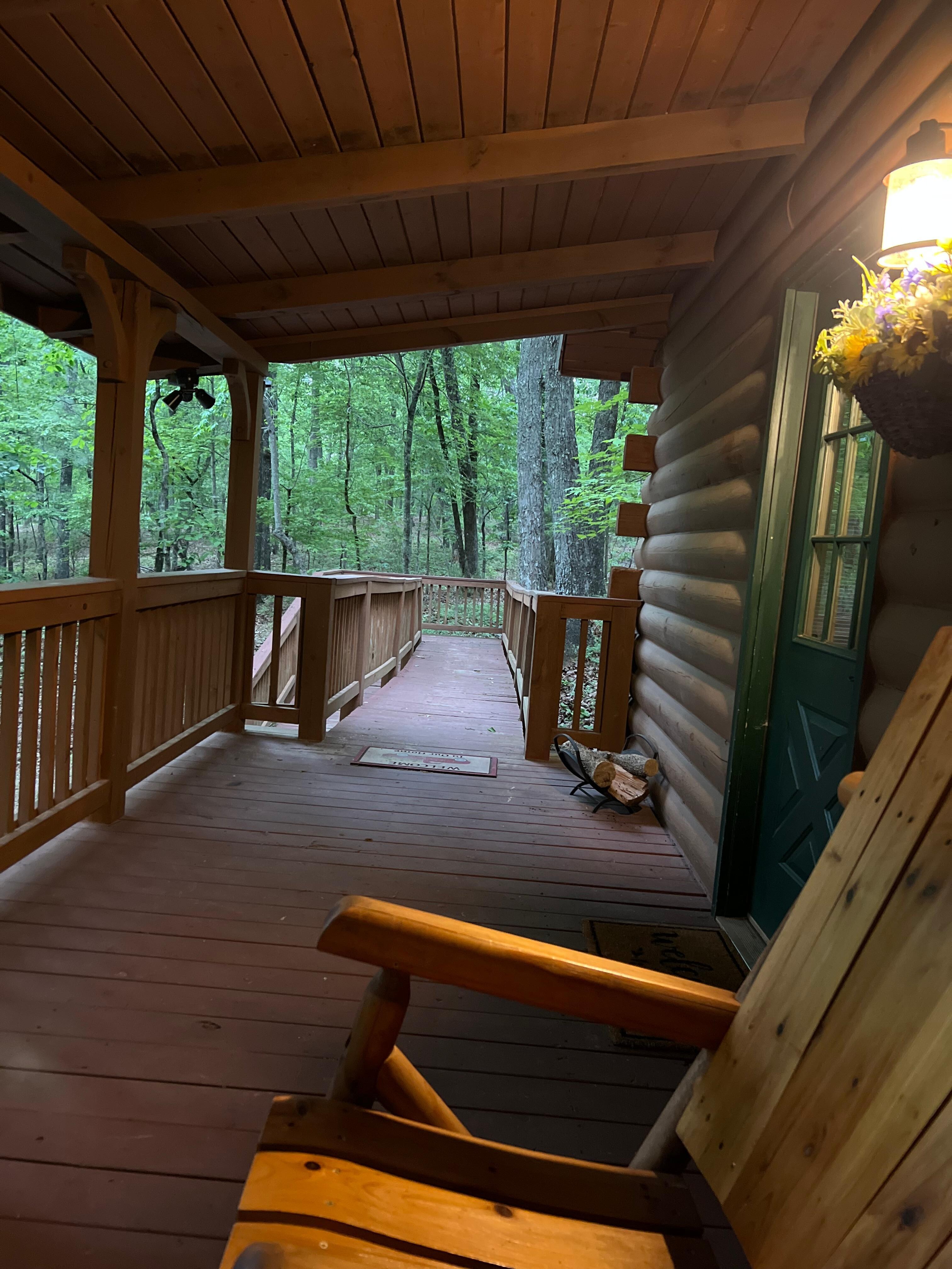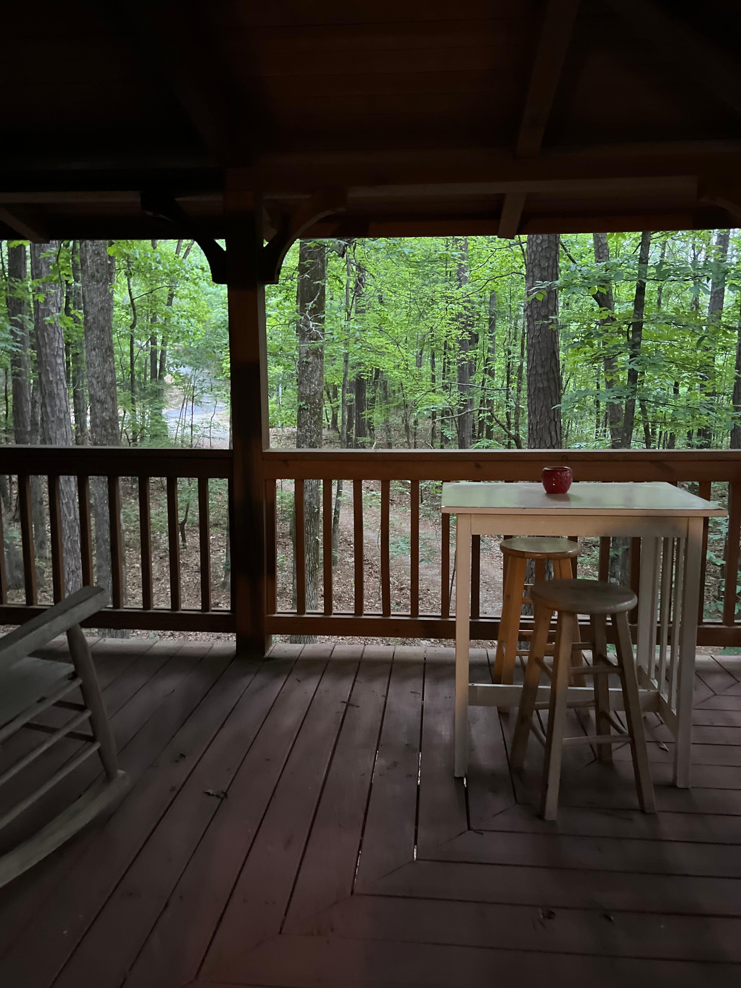 Whether you plan to celebrate a honeymoon or anniversary, or enjoy a few days of "family time", we welcome you to Casa Cardinal. Rock on the porch, or go for long walks in the woods, then enjoy cooking in a completely outfitted kitchen. Savor the sounds of nature, or watch streaming TV. This is a custom built cabin offering a peaceful retreat! and located, literally, at the end of the road at Mountain Top. As you'll see from the most sweeping porch in the resort, cardinals, hummingbirds, deer and other wood critters appreciate the remoteness, and so will you.