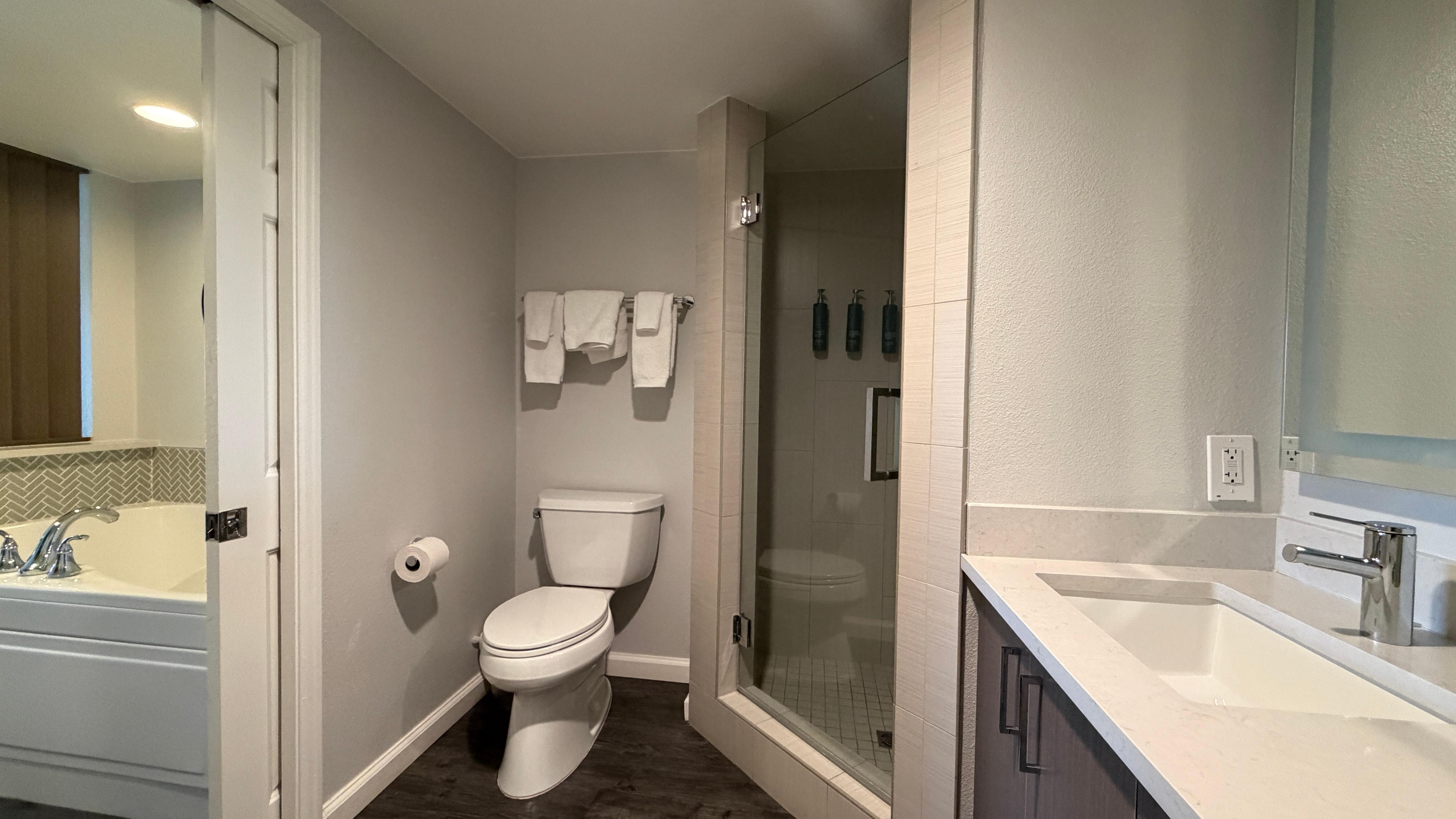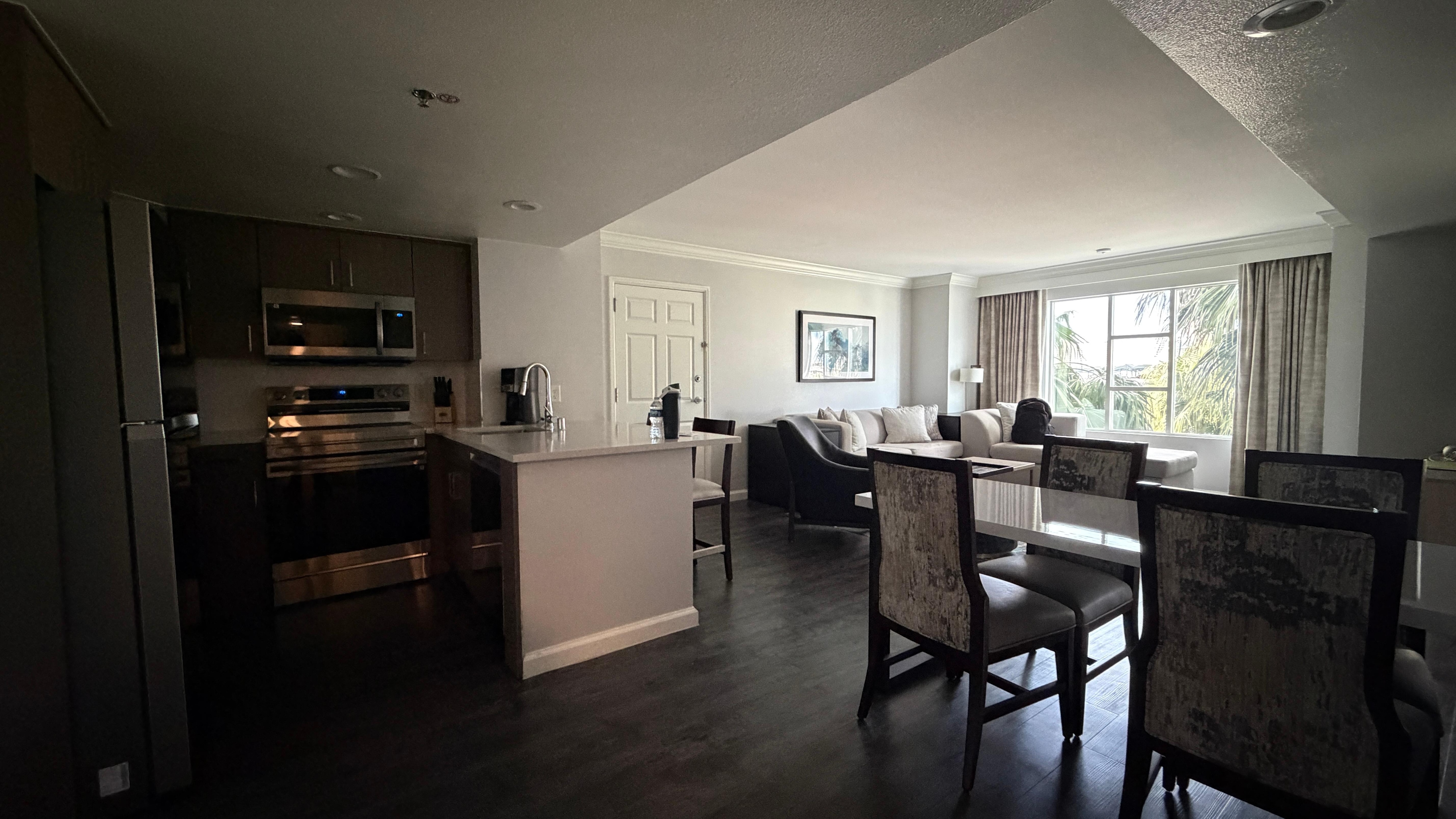 Very impressed with the hotel for the price. We had a one bedroom suite that even had a full washer and dryer and a huge soaking tub. We had a short stay for weekend soccer games but it will definitely be my top choice for any future especially longer Vegas trips. Great convenience store with Starbucks, everything was provided just off the strip and parking garage was easy access. I usually hate Vegas trips for non Vegas strip activities - this was my favorite Vegas trip mainly due to this hotel booking