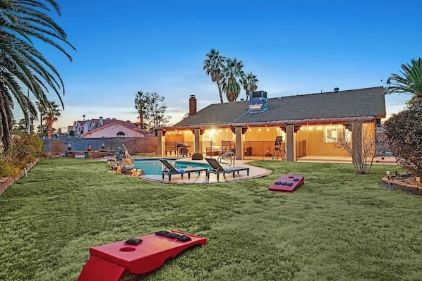 Huge Backyard Fun Games+Arcade+Pool+Firepit tem piscina?