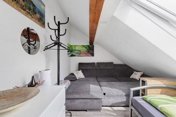 Quiet rooms in a shared apartment – ideal for solo travelers, couples, or workers. This private room in Laupheim offers 15 sqm for two to three guests. You have a bedroom, a shared bathroom, and a fully equipped communal kitchen. Amenities include Wi-Fi (suitable for video calls), TV, washing machine, and fan. The property is centrally located and perfect for short stays, commuters, or weekend guests. Enjoy privacy and all essential comforts for a pleasant visit. Good transport links and free parking are available directly at the house.