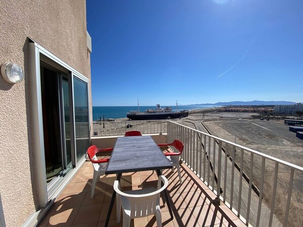 une Terrace inexploitable de 10 h a 20h situer en plein sud sans possibilité de faire de l ombre surtouts en période de canicule impossible de ventiler le studio malgré tous une superbe vue sur le festival electrobeach par contre il faut savoir qu' il faut plus une semaine pour le montage du podium et une semaine pour le montage installation d un camion frigorifique au pied de immeuble qui tour de jour comme de nuit balayeuse qui nettoyeur vers 5h du matin bruit chariot élévateur avec le bip bip qui va bien en période de canicule les travaux se font de nuit un logement au cœur d un chantier publique .