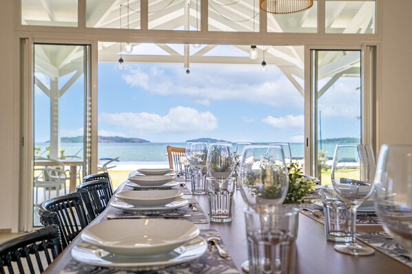 Extending from this space are 3 bedrooms, one of which has a private bathroom. The other two share a separate bathroom and boast magnificent sea views.